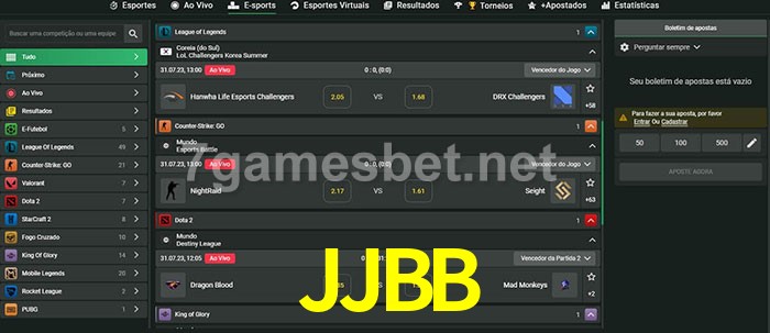 A aposta JJBB oferece aos jogadores a experiência mais conveniente de apostas em eSports!
